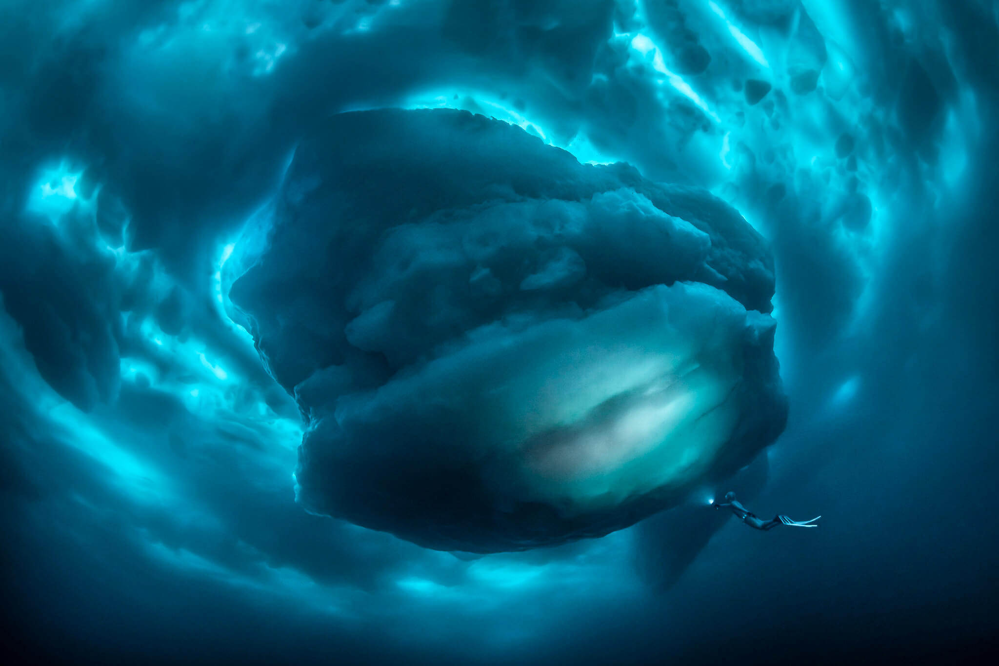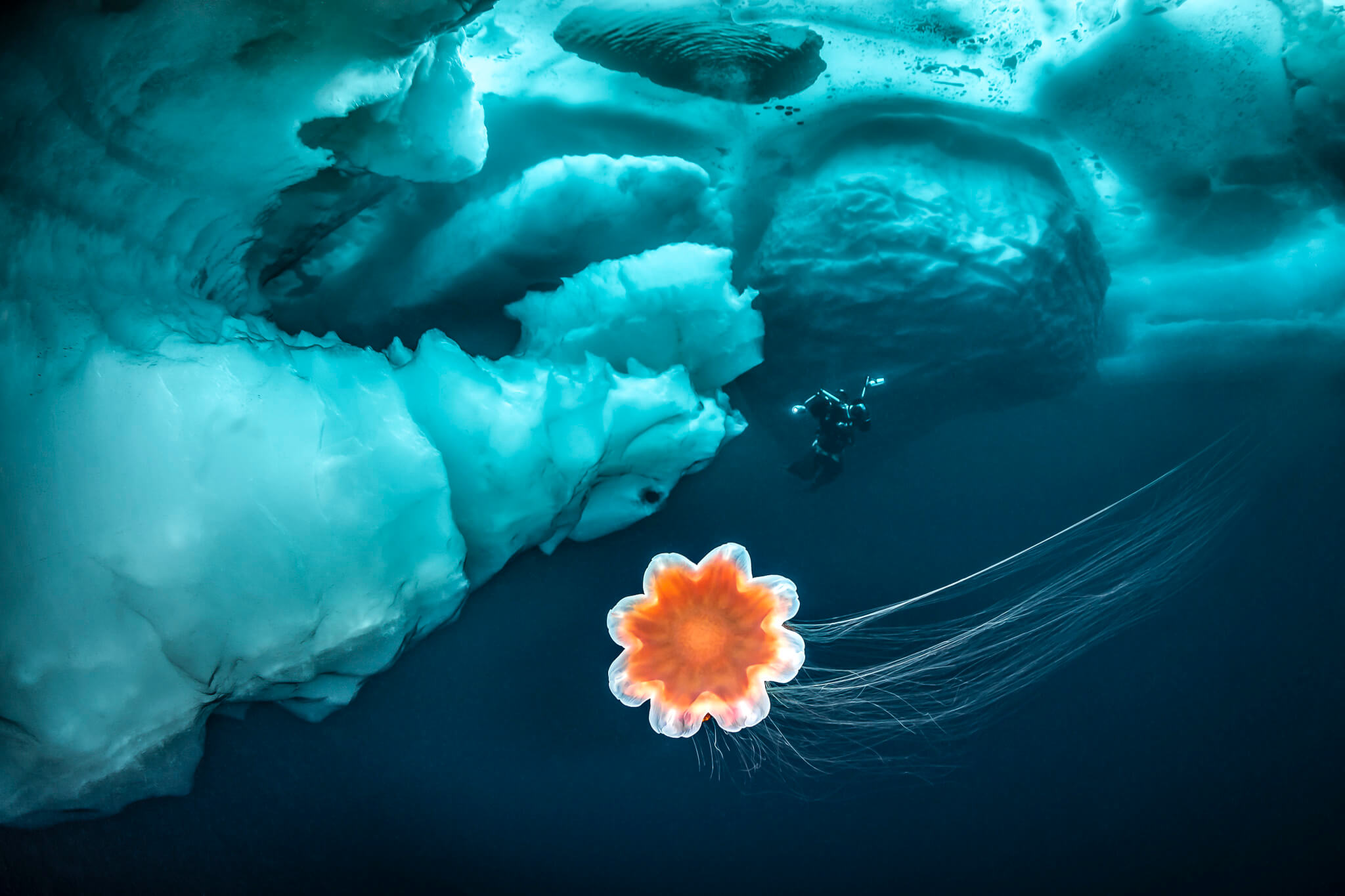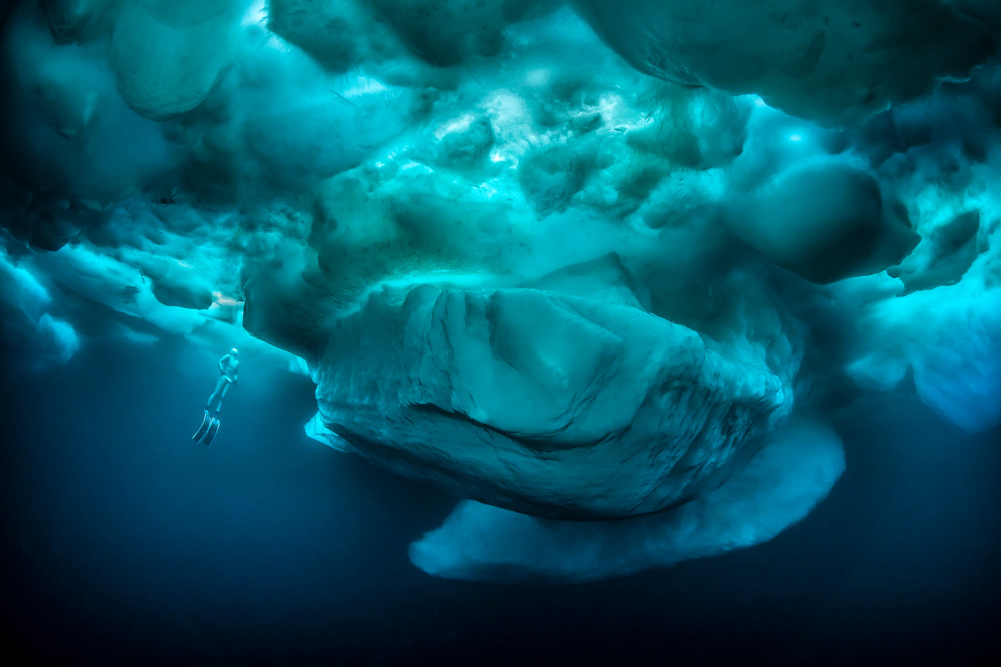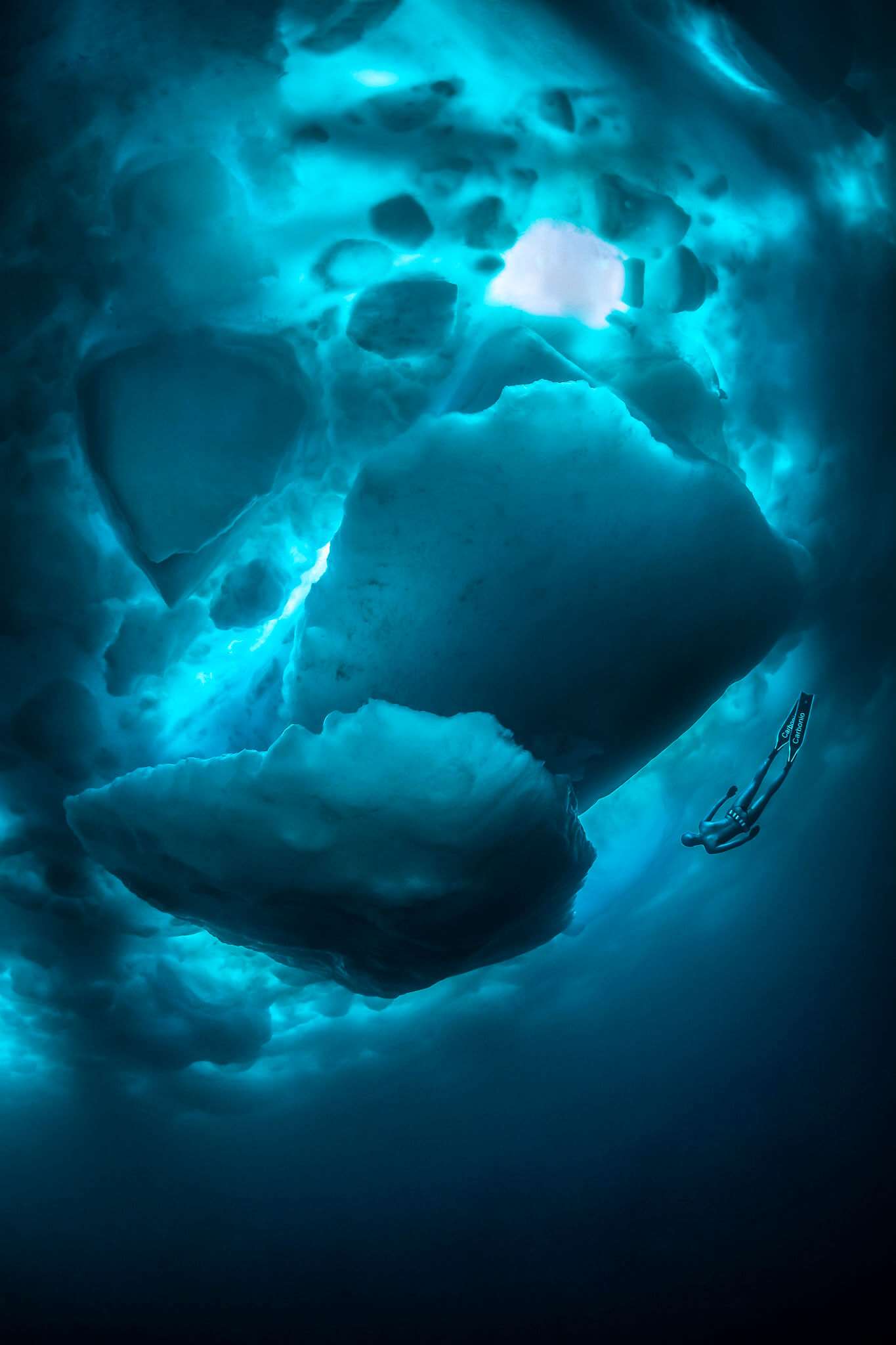 All images have been taken near Tasiilaq in East-Greenland. Water temperature was minus two degree Celsius in topwater conditions up to minus 27 degree Celsius (with wind chill factor). The freediver in the latest images is the over 30-time record holder Anna von Boetticher.