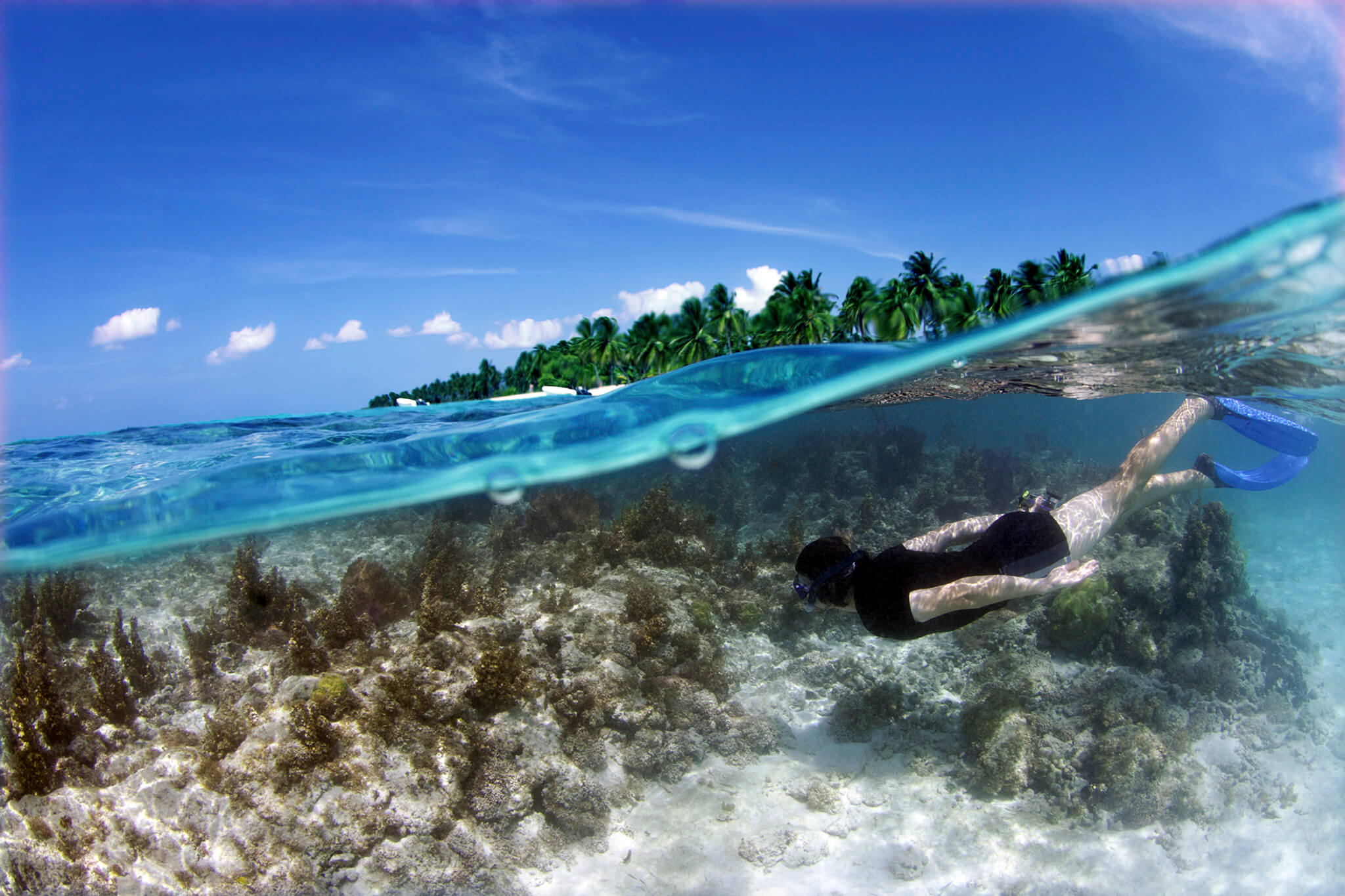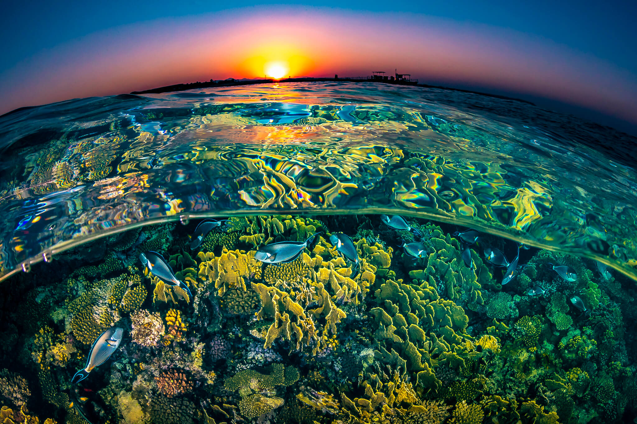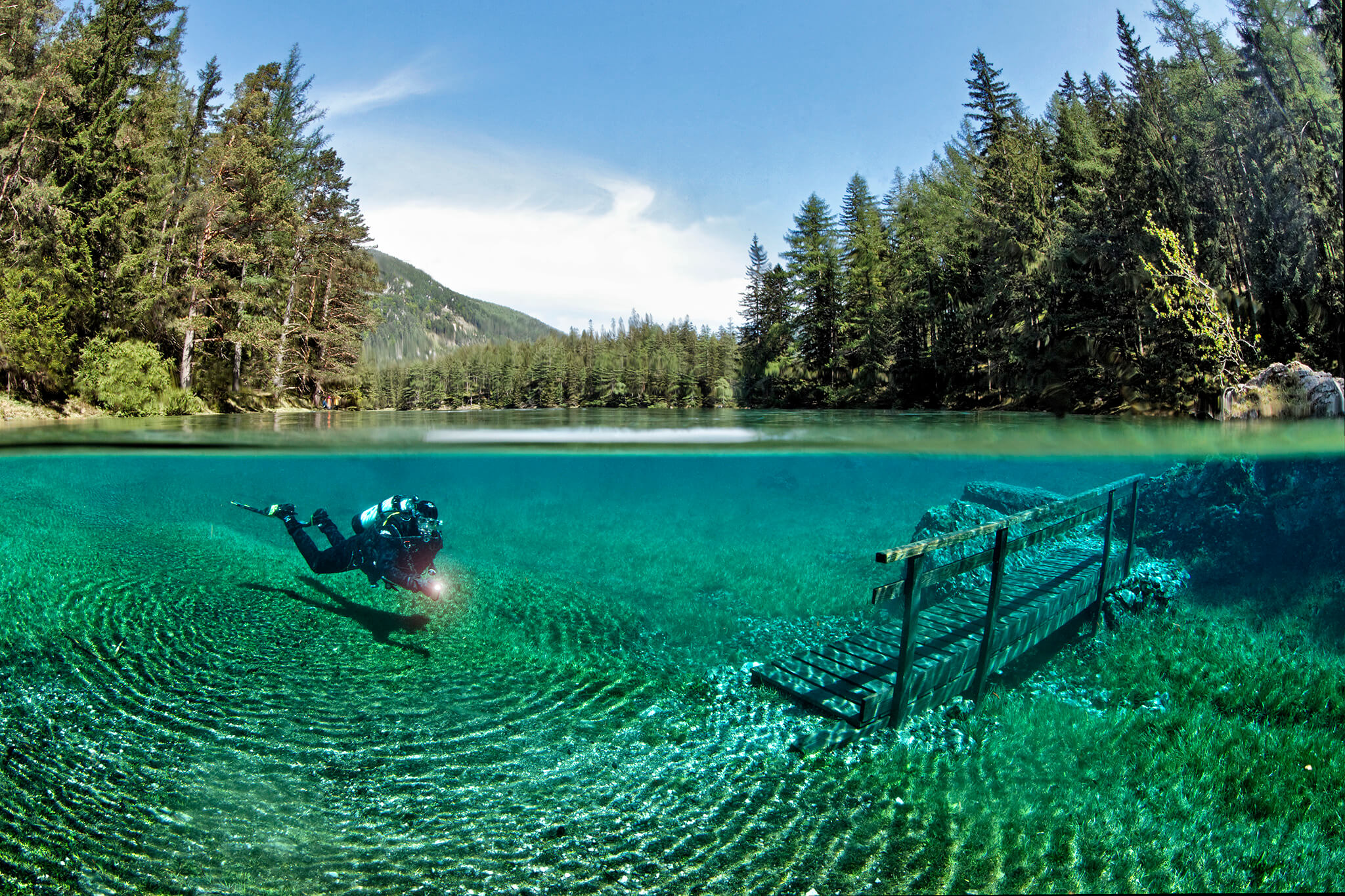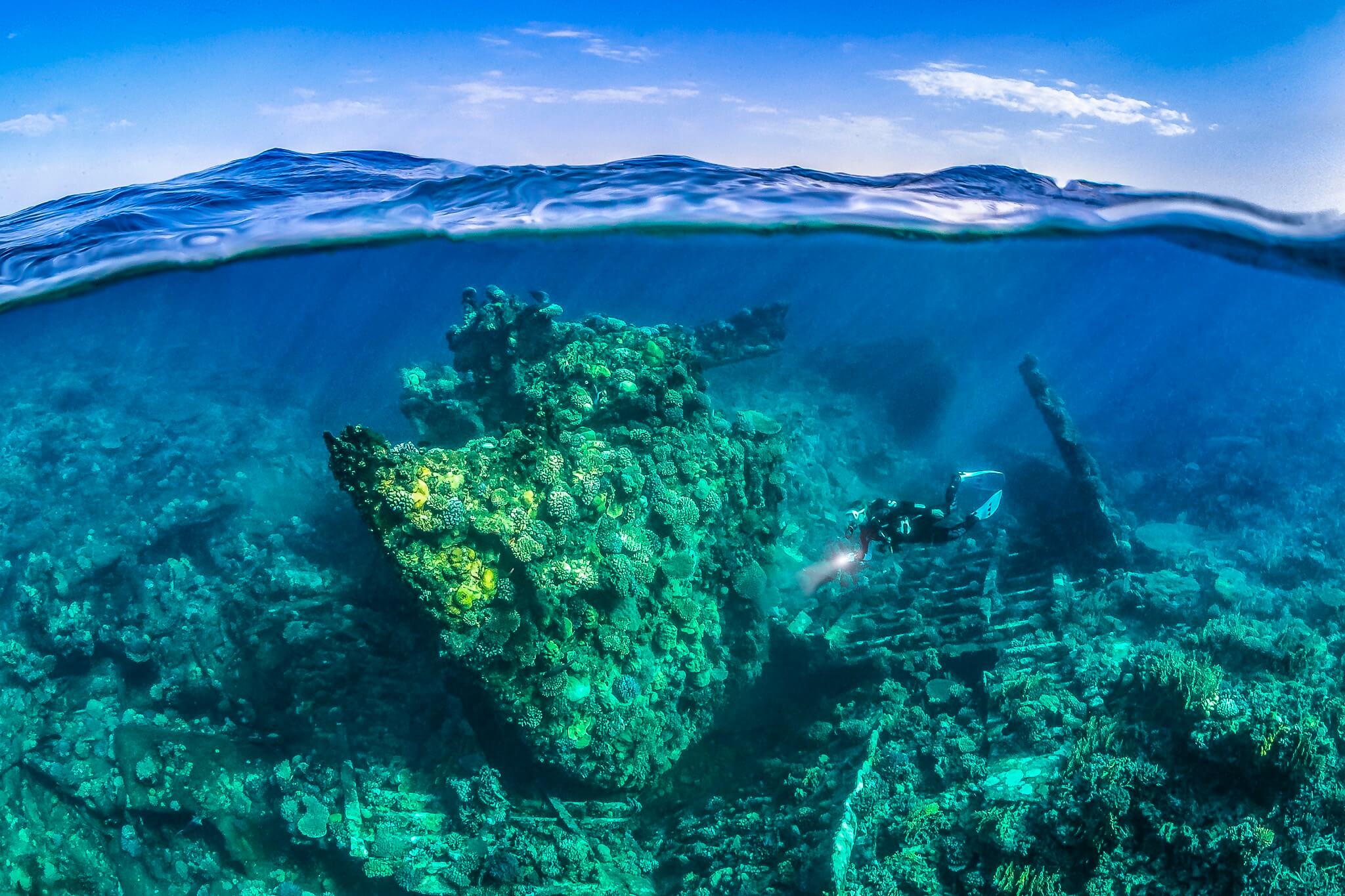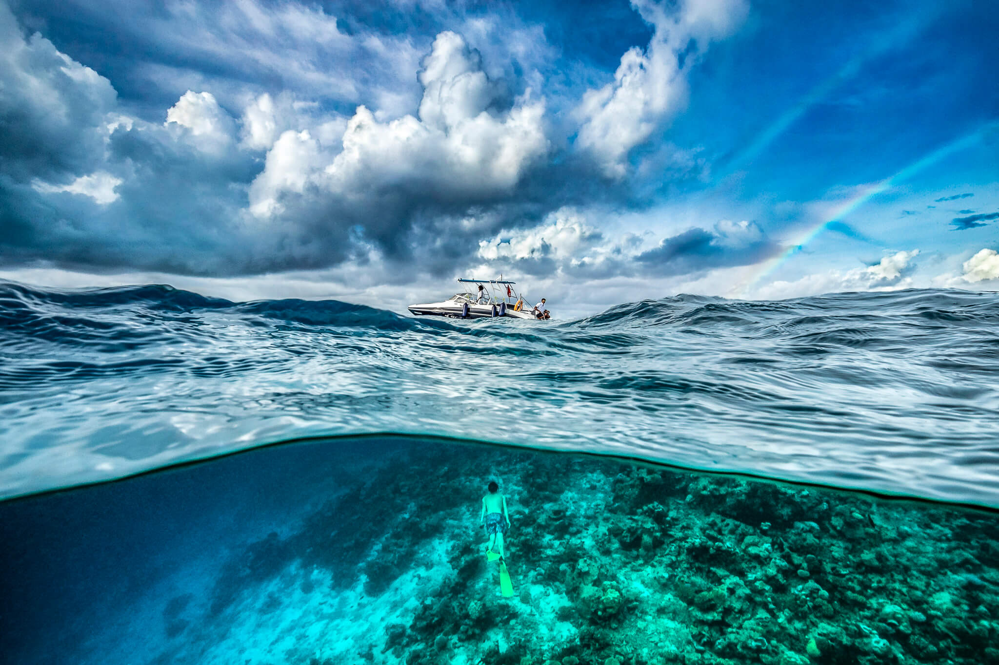 Images that have been taken half under and half above the surface of the water have an big impact to the viewer as they connect both elements like no other photos.
