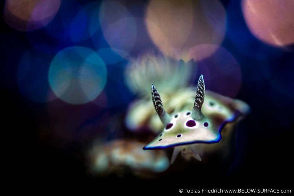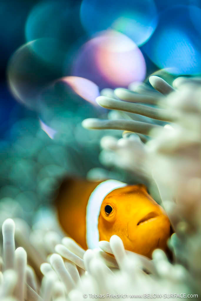 A different approach to macro photography, realized with a special, artificial background that creates a "bubble bokeh" in the images.