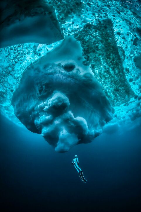 All images have been taken near Tasiilaq in East-Greenland. Water temperature was minus two degree Celsius in topwater conditions up to minus 27 degree Celsius (with wind chill factor). The freediver in the latest images is the over 30-time record holder Anna von Boetticher.