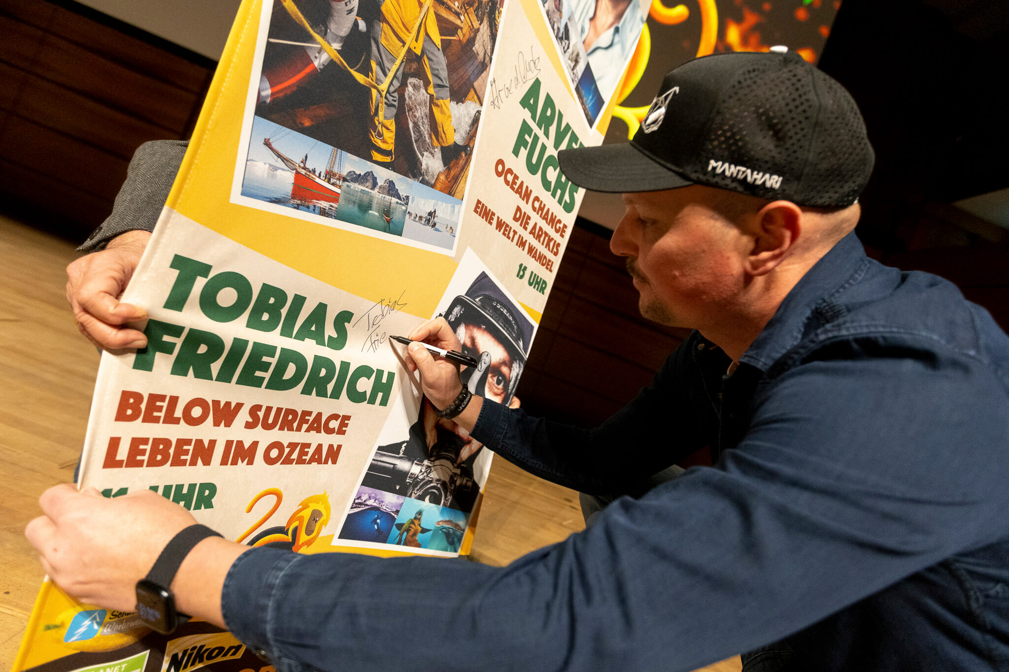 On his expeditions into the depths of the world's oceans, Tobias Friedrich portrays marine life in all its abundance. The multi-award-winning underwater photographer is looking for challenges and pushes the limits of what is possible for the perfect picture. In his extraordinary live show "BELOW SURFACE - Life in the Ocean" he talks about spectacular images and takes the audience on a fascinating journey into the mysterious world beneath the surface of the sea. Tobias Friedrich's adventurous diving expeditions take him to various regions of the world several times a year. He always has an underwater camera in his luggage, because for him diving is inextricably linked with photography. He took pictures of orcas hunting in the fjords of Norway, portrayed giant mantas in the waters of the Maldives, got up close and personal with a humpback whale in the Arabian Sea and got lost in the depths of sunken ships from bygone times. In addition to the giants of the oceans, it also includes the small, shimmering, colorful sea creatures in the viewfinder, which are particularly rich in species in the marine cosmos of Indonesia. In search of unusual motifs and new perspectives, he explores the physical and technical limits and does not shy away from major challenges. In the Arctic, he plunged into minus two degrees cold water to photograph the majestic icebergs half above and half under water. When diving at night, he was dropped off in the open ocean to take pictures of fantastic deep-sea creatures drawn by the light from his headlights. In French Polynesia, he dived in the tropical waters of the South Pacific side by side with huge humpback whales, which raise their calves there, and then found himself in the water with hundreds of gray reef sharks. Tobias Friedrich gives a captivating report of his most exciting experiences under the water surface, shows the multifaceted beauty of marine life and at the same time grants exciting insights into the work of a passionate underwater photographer. An outstanding report for the whole family, full of magic and with a lot of depth.