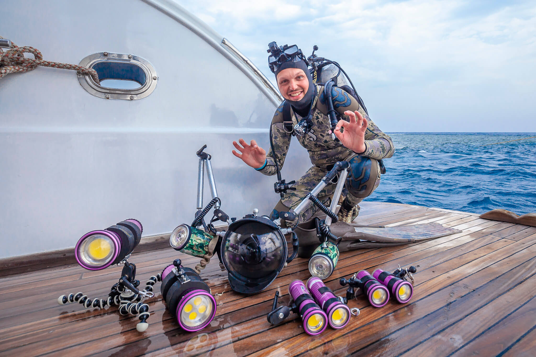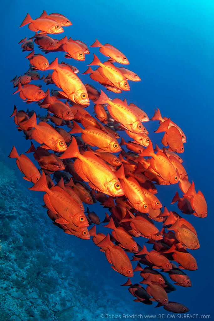 The workshop leader Tobias Friedrich will alternately accompany the participants during the dives in order to be able to give suggestions during and after the dive. Between the dives, Tobias is available for questions and suggestions. Every evening there is a picture discussion with all participants, where one photos per person is assessed and processed. In addition, general techniques of underwater photography are discussed, which are based on the wishes of the participants and can include the following topics: